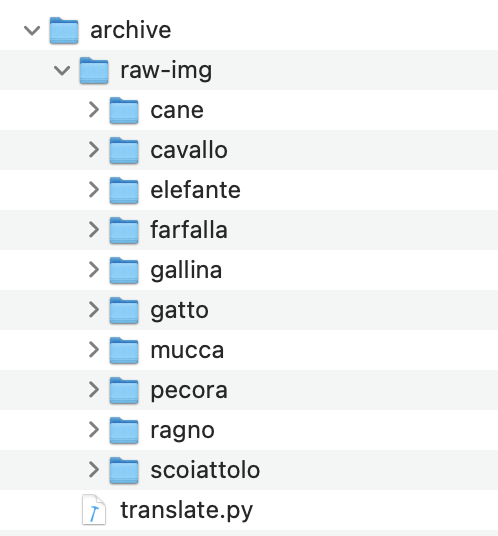 In this case, we will work with pictures of cats located in the archive/raw-img/gatto/ in the unzipped archive.