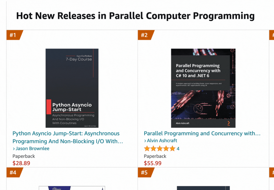This page provides a complete and up-to-date list of all books that cover Python concurrency, as well as helpful books on related topics. I own a copy or have digital access to all of the books listed.
