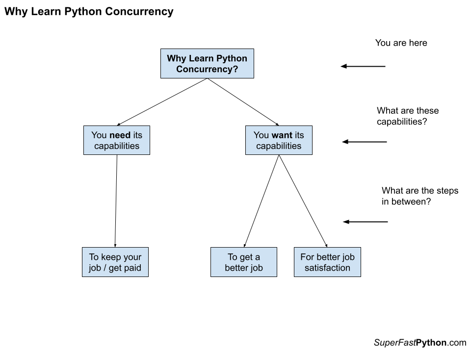 You want to learn Python concurrency ultimately to get a better job or for better job satisfaction.